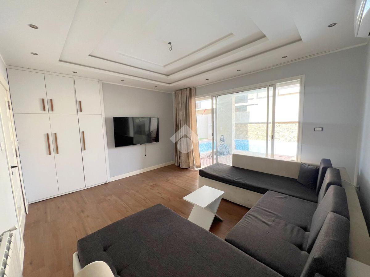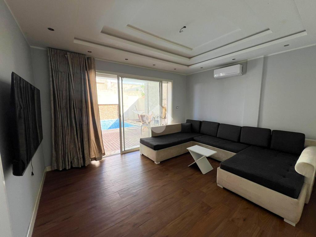 Découvrez cette magnifique villa individuelle de style américain, entièrement meublée et prête à vous accueillir dans un cadre de vie moderne et raffiné. La partie jour offre un joli jardin verdoyant, une grande piscine de 50 m², un salon et une salle à manger donnant directement sur la piscine, ainsi qu’une cuisine équipée (four, hotte, plaque) ouverte sur un petit séchoir. Une salle de bain avec douche à l’italienne complète cet espace.